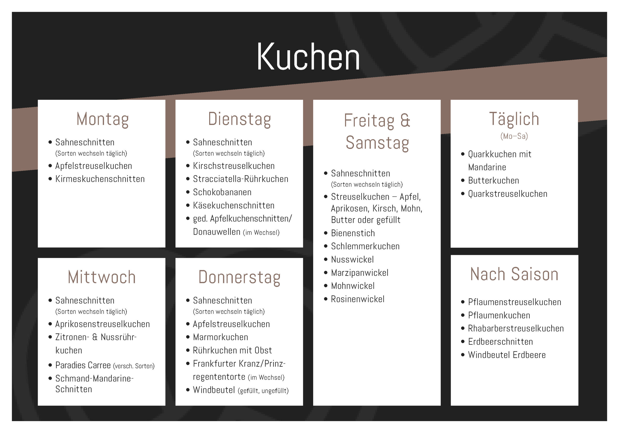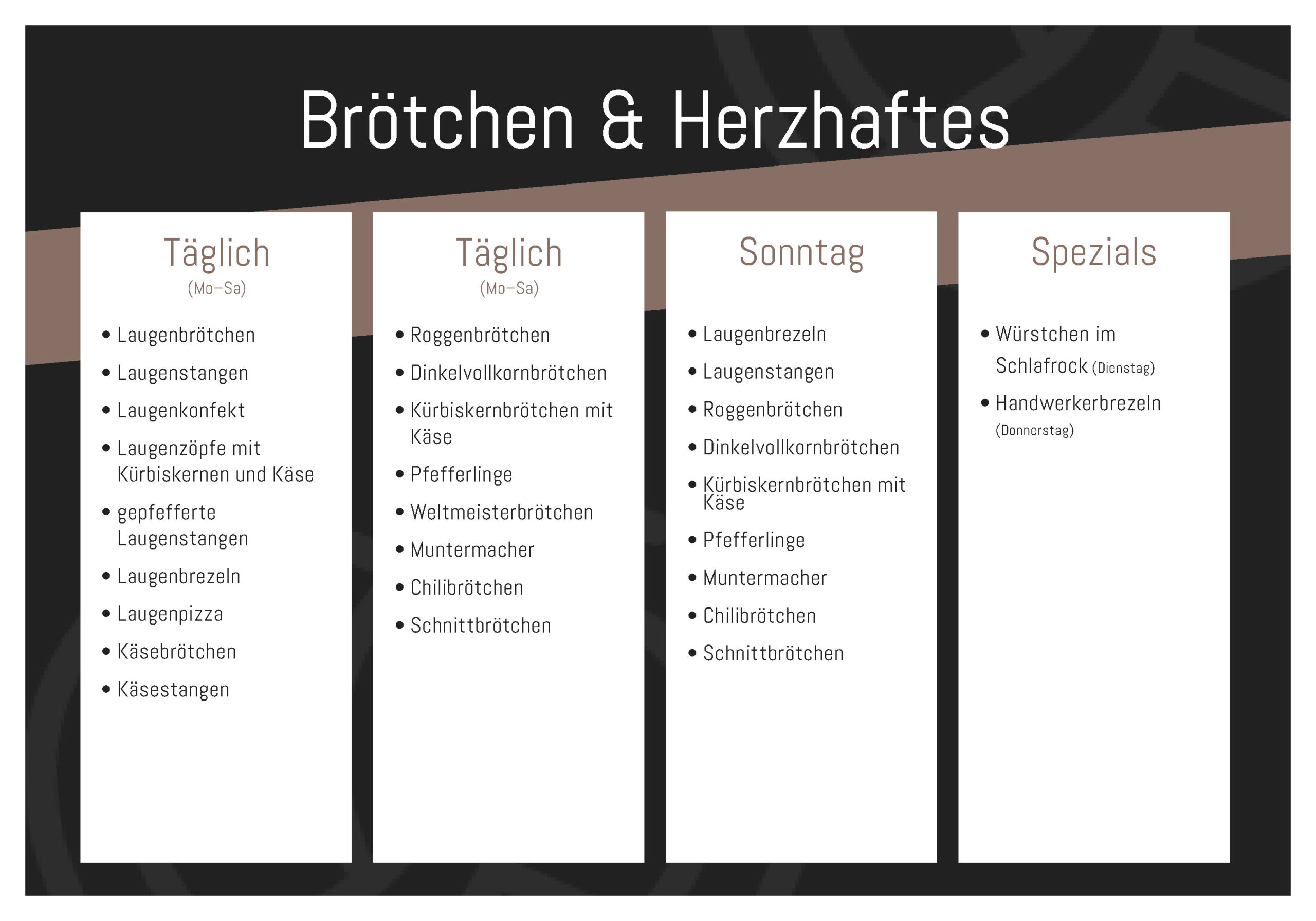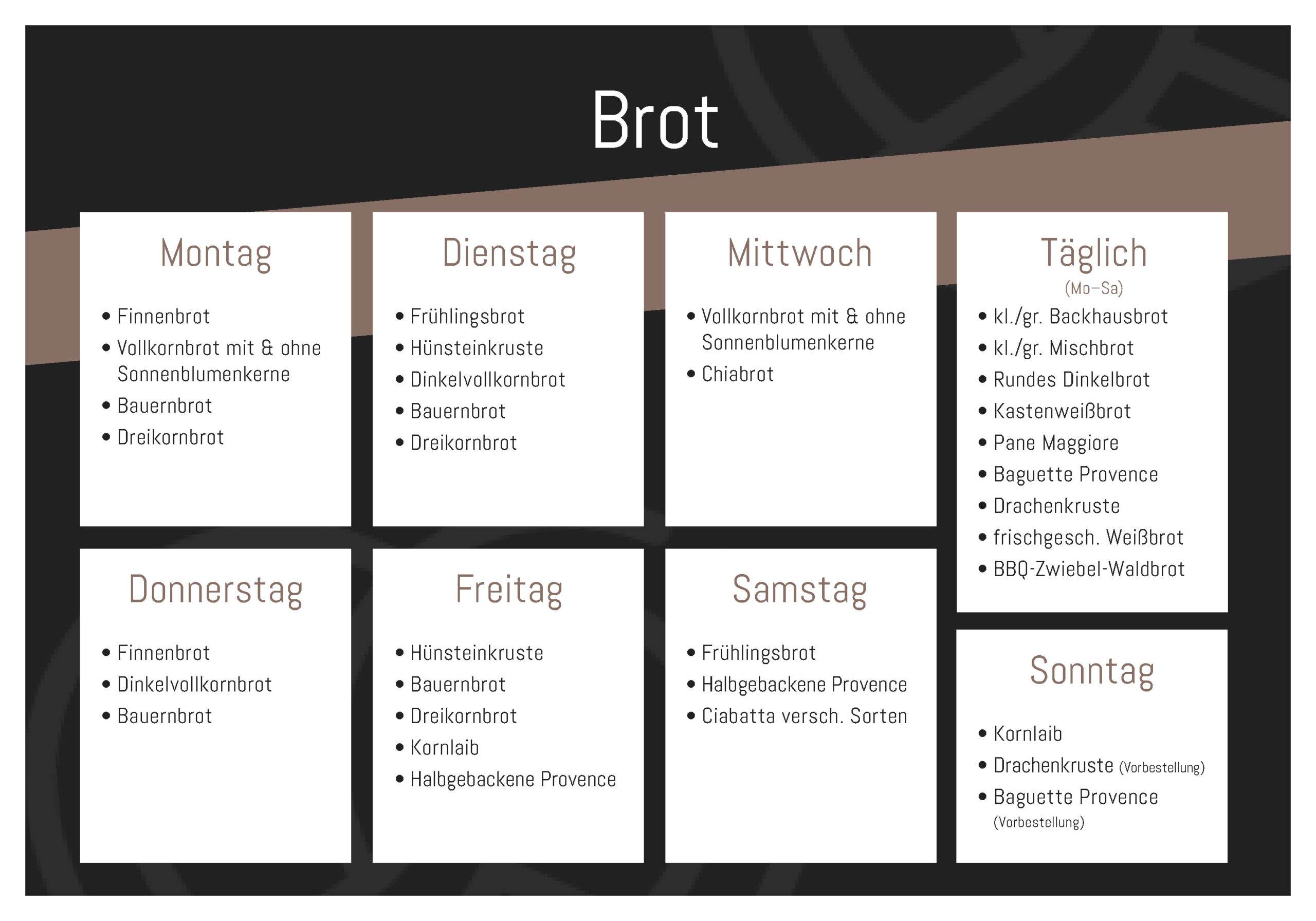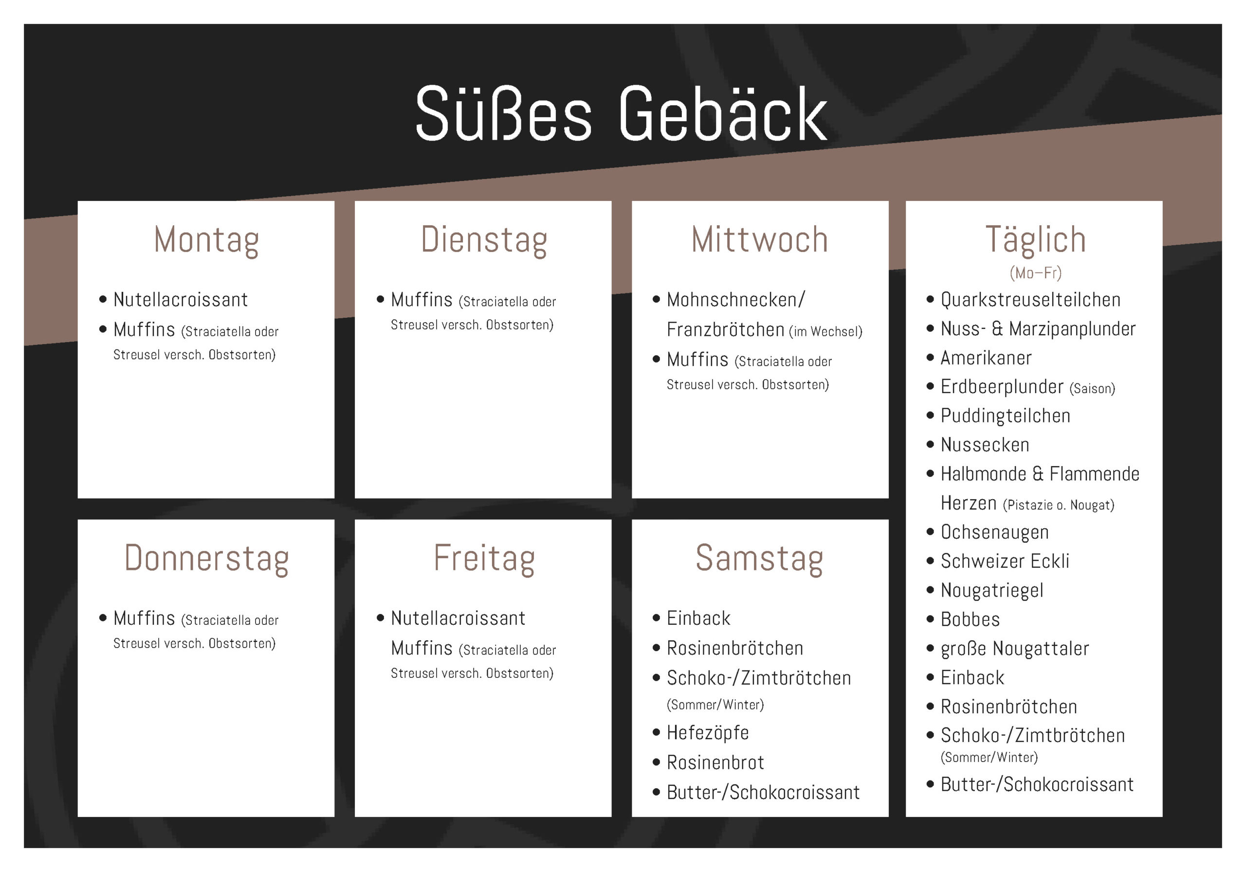 Unsere Backwaren in der Wochenübersicht